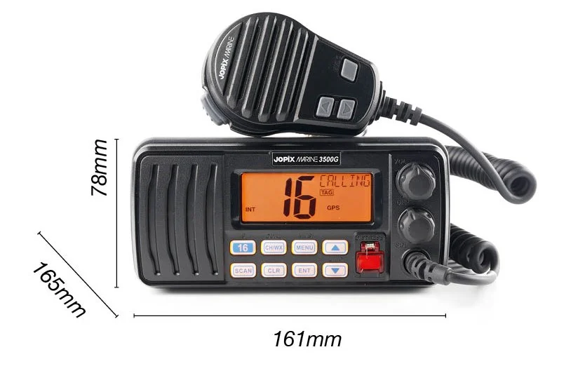 La Jopix Marine 3500G es una emisora de marina VHF/FM con DSC y receptor GPS incluido, de tamaño compacto y fácil instalación con una pantalla LCD retroiluminada de fácil lectura con información clara y útil siempre a la vista.